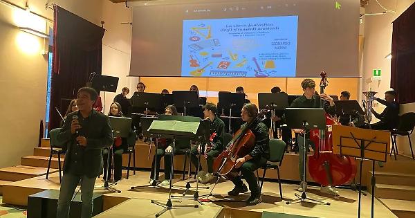 Il progetto, a cura della professoressa Lopriore con il contributo dei docenti Coccia, Ragusa e Trofanchouk, prevedeva la realizzazione, dopo una breve ouverture, di 9 episodi dedicati ai diversi strumenti, alcuni episodi in forma di canzone ed un ultimo finale a celebrare la bellezza del far musica insieme. È stato questo infatti il messaggio dello spettacolo: la musica è gioco, divertimento, gioia proprio perché la si fa assieme agli altri. Quella che hanno offerto gli studenti della classe 3AM è stata una rappresentazione corale, tutti hanno partecipato dando ciascuno il proprio contributo. Ogni docente ha fatto squadra con i colleghi per sostenerli ed aiutarli, il pubblico in sala è stato coinvolto dalle storie raccontate a parole dal narratore, uno studente del terzo scientifico, e in musica con brani strumentali o con canzoni. Alcuni episodi prevedevano infatti la parte vocale, ben interpretata dalle cantanti della classe. Uno spettacolo che ha toccato le emozioni e ha confermato, dopo il tanto sofferto distanziamento sociale della pandemia, quanto sia bello condividere le passioni e l'arte. Roberto Piumini, invitato allo spettacolo, si è complimentato per l'iniziativa e ha inviato il suo augurio di buona musica.
