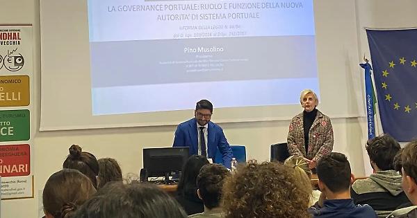 CIVITAVECCHIA – Portualità e geopolitica, blue economy e commercio internazionale: sono i temi trattati nella lezione di ieri all’istituto tecnico economico Baccelli-Stendhal dal presidente dell’Adsp Pino Musolino, di fronte agli studenti del corso di Relazioni Internazionali per il Marketing e il percorso Afm quadriennale. L’incontro, fortemente voluto dalla dirigente scolastica Maria Federici e organizzato dalle docenti Sargolini e Ferri, mirava a far conoscere agli alunni in modo esaustivo la più importante realtà economica del territorio. Tema centrale la portualità nel quadro nazionale, ma soprattutto internazionale. Ha introdotto i lavori Alessandro Bonifazi, analista geopolitico, il quale ha illustrato ai ragazzi la crucialità del ruolo dei porti nel contesto globale, portando esempi concreti inerenti la sua area di competenza, quali la Belt and Road Iniziative (Nuove Vie della Seta) e la logistica della Supply Chain internazionale.