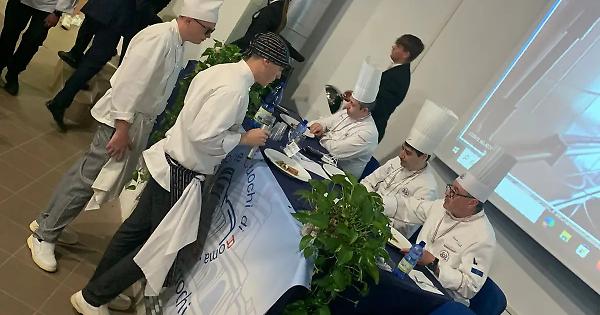 LADISPOLI - Non si fermano le attività di formazione “outdoor” dell’alberghiero di Ladispoli. Martedì scorso gli studenti Francesco Armadio, Filippo Bacchetta, Giordano Caporusso e Giulia Pierotti (V KB), accompagnati dai loro docenti Renato D’Aloia e Salvatore Esposito, hanno partecipato al Memorial “Carlo Chiarinelli” che si è svolto nella Sede dell’Istituto Paolo Baffi di Fiumicino con il coordinamento dell’associazione Cuochi di Roma. Unica la categoria del concorso: cucina calda. Un piatto (primo o secondo) da realizzare in 45 minuti con ingredienti a sorpresa estratti da una Mistery Box. Due le giurie: una composta da 3 esperti della Federcuochi per il giudizio finale e una tecnica per la valutazione delle diverse fasi di esecuzione e preparazione del piatto. I ragazzi dell’istituto superiore ladispolano hanno conquistato un argento e un quarto posto.