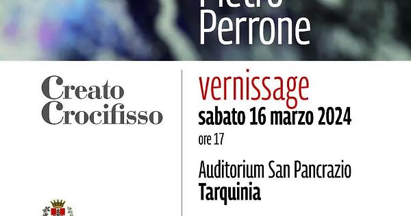 Pietro Perrone, in Creato Crocifisso, propone quattro crocifissioni, quattro calvari, in cui gli elementi naturali, aria, acqua, terra e fuoco, fanno da sfondo e contesto al dolore della società contemporanea.