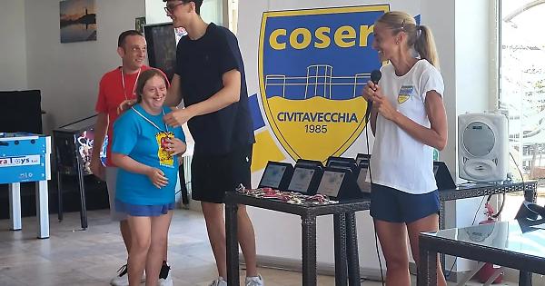 CIVITAVECCHIA – Una società come la Coser che da sempre mette nella corsia accanto a quella degli agonisti il sociale. Una Fondazione Cassa di Risparmio di Civitavecchia sempre presente con il proprio contributo. Una cordata di imprenditori locali che hanno abbracciato con entusiasmo l’iniziativa, adottando 35 ragazzi di Ass.Pro.Ha, associazione Il Ponte e Ottava Nota onlus, e permettendo loro di “evadere” per 40 giorni, immersi nella piscina della Centumcellae al Faro, tra divertimento e corsi di nuoto. È stato un successo “Splash 2”, con le premiazioni che quest’anno non potevano non essere dedicate ad Antonio Parisi, scomparso da qualche giorno.