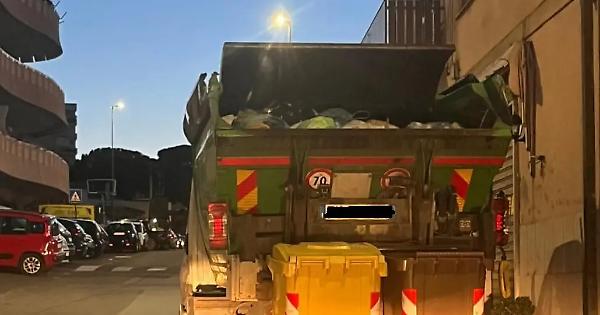 Rifiuti ammucchiati in un unico compattatore