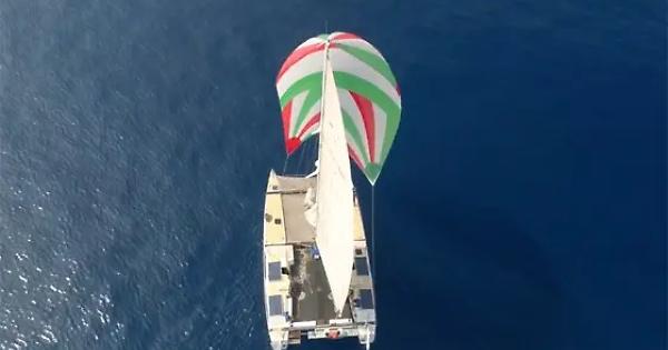 Il fedele compagno di viaggio del fratelli Vetrugno, il catamarano “Double Trouble”, lungo 14,84 metri e largo 8,7 metri, è stato disegnato da Giorgio Bergamini e varato nel 1985. Un’imbarcazione senza fronzoli che non è stata pensata per il diporto, ma solo per lunghe navigazioni. Una barca da Roma per 2.