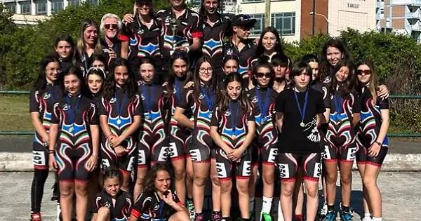 Le medaglie d’Argento regionali sono state conquistate: 1 da Greta Cardillo Ciccione nella gara di Destrezza, 2 da Flavia Crusco nella Doppia Sprint e nella 5 giri in linea della cat. Esordienti femm., 1 da Leonardo Tatulli nella Doppia Sprint della cat. Esordienti mas., 2 da Giorgia Cosman nella gara di Destrezza e nella Doppia Sprint ed 1 da Cristina Pilli nella 8 giri sprint della cat Esordienti fem., 2 da Novella Cozzolino nel Giro Crono e nella mt 2.000 a punti della cat. Ragazze 12 femm., 2 da Simone Piccoli nel Giro Crono e nella mt 3.000 a Punti della cat. Ragazzi mas., 2 da Giada Cavalli nel Giro Crono e nella mt 3.000 a Punti della cat. Ragazzi femm., 1 da Francesco Marchetti nel Giro Crono della cat. Allievi mas., 1 da Giulia Michettoni nel Giro Crono, 1 per Elisa Folli nella mt 5.000 a Punti ed 1 nell’Americana a Squadre composta da Greta Festa, Giada Cavalli ed Emili Cani della cat. Allieve femm. Le medaglie di Bronzo regionali sono state conquistate: 1 da Kevin Bocu Ionut nella 8 giri in linea della cat. Esordienti mas., 2 da Valeria Princigalli nella gara di Destrezza e nella Doppia Sprint ed 1 da Giorgia Cosman nella 8 giri in linea della cat. Esordienti fem., 1 da Alice Beck nel Giro Crono e 1 da Siria Tallarico nella mt 2.000 a Punti nella cat. Ragazze 12 femm., 1 da Emili Cani ed 1 da Beatrice Conti della cat. Ragazze femm., 1 da Francesco Marchetti nella mt 5.000 a Punti della cat. Allievi mas., 1 da Eleonora Bocchini nel Giro Crono della cat. Allieve femm. L’allenatrice Valentina Manca, il Maestro Giovanni Piccoli ed il Coach Andrea Farris sono entusiasti dei risultati dei propri atleti, dicendo che nonostante la pista di Latina sia completamente diversa da quella di casa, creando problemi di adattamento ai nostri atleti a causa di una superficie estremamente scivolosa, curve con una sezione di curvatura totalmente diverse da quella di allenamento, sono comunque riusciti anche grazie a giochi di squadra, dove gli atleti più esperti hanno aiutato i compagni di squadra meno esperti a conquistare posizioni importanti e a volte interi podi che ci hanno concesso di far qualificare tutti i nostri atleti al Campionato Italiano su Pista e vincere il Titolo Regionale di Società anche su pista dopo quello su strada vinto a Terni. Ora la preparazione si incentrerà esclusivamente al prossimo Campionato Italiano su strada che si svolgerà al circuito stradale “Renato Perona” di Terni dal 26 al 28 Maggio, valevole per le qualificazioni per il prossimo Campionato D’Europa che quest’anno si terrà in Francia nel mese di Luglio.