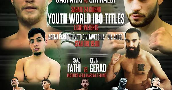 Sabato 24 giugno a partire dalle ore 19 nell’arena allestita all’interno del Parco Uliveto di Civitavecchia va in scena la difesa Mondiale di Christian Gasparri (9-0- 0), il quale sarà opposto al forte Biagio Grimaldi (5-1-0); in palio in titolo Youth IBO dei pesi leggeri.