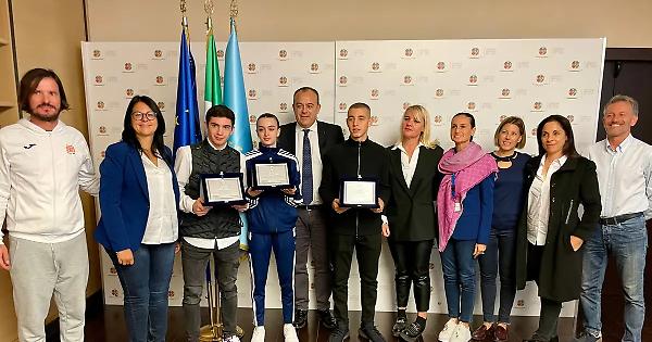 DALLA REGIONE Gli atleti sono stati ricevuti dalla consigliera regionale Emanuela Mari e dal presidente del consiglio regionale Antonello Aurigemma. «Sono un esempio per i loro coetanei»