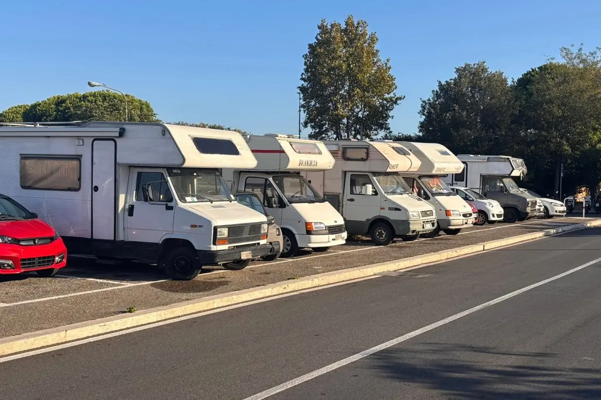 I camper ed i camion che fino a qualche settimana erano fermi al parcheggio del tribunale di via Pecorelli – oggi per gran parte chiuso per i lavori in corso in vista della nuova disciplina della sosta – oggi sono parcheggiati nell’area fuori l’istituto superiore. Insomma, il problema è stato solo spostato di qualche metro.