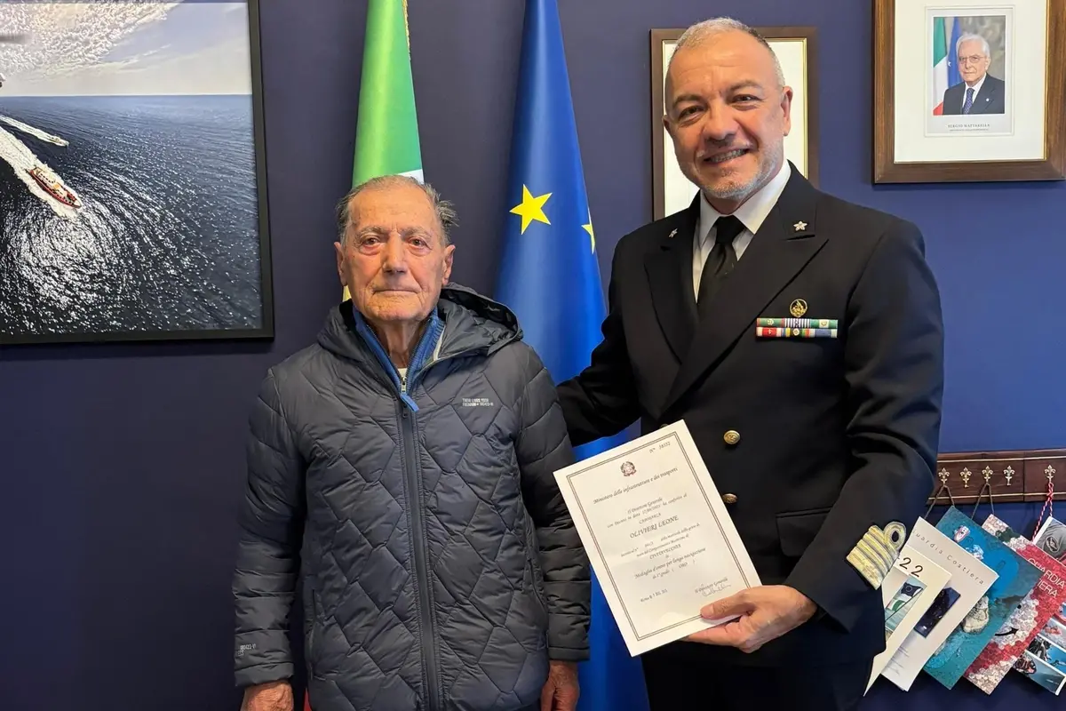 CIVITAVECCHIA – Alla Capitaneria di porto di Civitavecchia è stata consegnata la medaglia d’oro di lunga navigazione a Leone Olivieri, classe 1931. A conferirgli l’onorificenza è stato il direttore marittimo del Lazio Cosimo Nicastro, nel corso di una breve ed emozionante cerimonia. Nato a Manfredonia il 9 aprile 1931 e residente a Civitavecchia, Olivieri – 95 anni – ha trascorso una vita intera in mare: imbarcato sui pescherecci sin dall’età di 13 anni, ha dedicato oltre 35 anni alla navigazione, traguardo che consente il conferimento della medaglia d’oro. Un riconoscimento per celebrare una lunga carriera, ma anche la passione e il legame profondo con il mare.