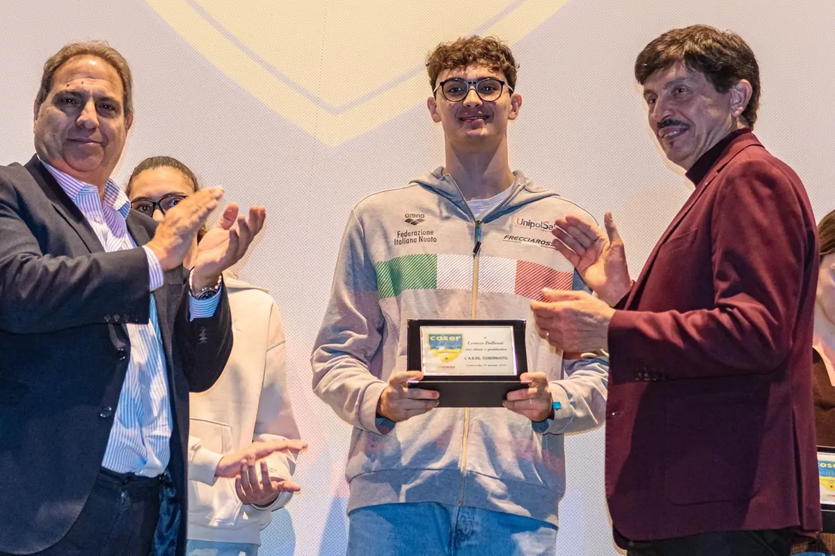 La cerimonia è proseguita con le premiazioni di Flavio Argiolas e Matilde Petronilli, finalisti ai tricolori di categoria, degli Esordienti B e A e del settore del nuoto artistico, guidato dalle allenatrici Elisa Sannino ed Eleonora Lanari. Chiusura dedicata ai Master, con gli atleti medagliati ai Regionali 2025. Una mattinata scandita anche da attimi di emozione e commozione, che ha confermato la Coser Nuoto come eccellenza sportiva e patrimonio condiviso della città.