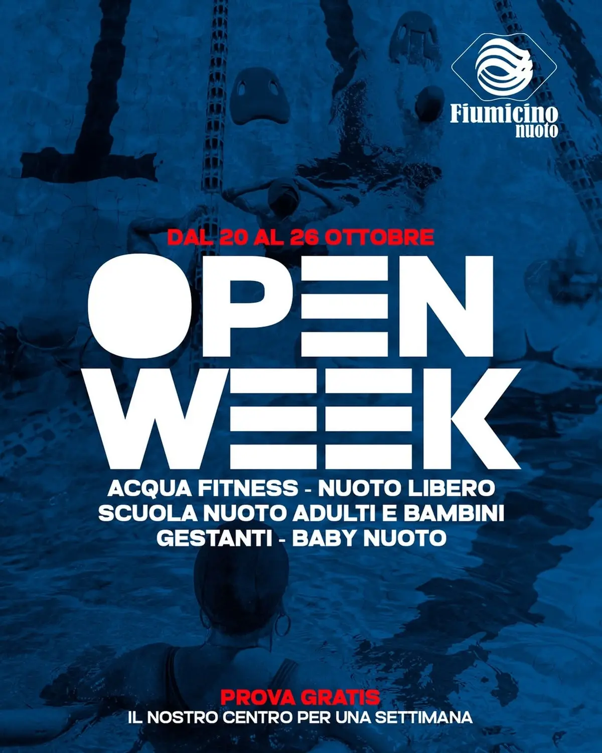 Una vera e propria festa dello sport è in arrivo a Fiumicino. Da lunedì 20 a domenica 26 ottobre, il centro sportivo Fiumicino Nuoto, situato in via Rodano, organizza l’Open Week. Quest'ultima, un’intera settimana di accesso gratuito alle sue attività acquatiche. L’iniziativa, in quel della piscina comunale, è rivolta a persone di tutte le età. Un’occasione imperdibile, per scoprire da vicino la vasta offerta del centro e immergersi (è il caso di dirlo) in un ambiente dinamico, familiare e attento al benessere psicofisico. Durante l’Open Week sarà possibile partecipare a lezioni di nuoto per adulti e bambini, acqua fitness, nuoto libero, corsi preparto in acqua e baby nuoto. Un ventaglio di proposte pensate per soddisfare esigenze diverse: dal principiante assoluto a chi desidera migliorare la tecnica, dalla futura mamma in cerca di relax alla famiglia con neonati, fino agli appassionati di fitness in cerca di un allenamento efficace e a basso impatto. In un periodo in cui lo stress quotidiano si fa sentire sempre di più, l’acqua si conferma un alleato prezioso per recuperare energie e prendersi cura di sé e dei propri cari. E quale momento migliore per iniziare, se non con una settimana totalmente gratuita? Attenzione, però: i posti sono limitati e la prenotazione è obbligatoria. Per partecipare è possibile contattare il centro al numero 06-6589759 o tramite WhatsApp al 380-6528939.