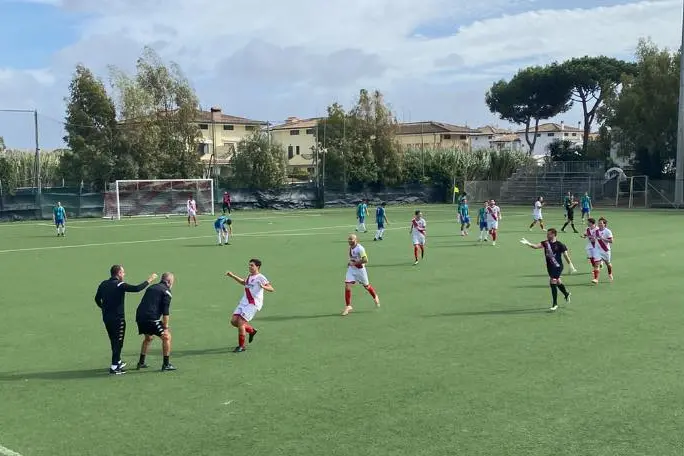 Continua la marcia trionfale del Fregene nel girone C di Promozione, che dopo il successo di misura sul campo dell’Atletico Latina supera anche il Nettuno con un convincente 2-0. I biancorossi, davanti al pubblico dell'Aristide Paglialunga, ottengono una vittoria che permette a loro di restare così a punteggio pieno dopo sei giornate, salendo a quota 18 punti. La prima frazione di gioco non è delle più brillanti per i padroni di casa, che in alcuni frangenti subiscono l’iniziativa del Nettuno. Al 22’ mister Natalini è costretto al primo cambio: fuori Simone Davì, fermato da un infortunio, dentro Guagliano. Il Fregene crea un paio di buone occasioni, ma senza riuscire a concretizzare. Nella ripresa la musica cambia. Al 47' Scifoni sblocca il match, finalizzando una splendida azione corale rifinita da Rizzitelli e Zambrini. Trovato il vantaggio, i biancorossi prendono in mano il gioco e al 54' trovano il raddoppio con una prodezza di Vissani: il centrocampista intercetta un rinvio corto della difesa ospite e lascia partire un destro potente che si insacca all’incrocio. Il passivo finale certifica la superiorità fregenese, che chiude il match senza soffrire. Domenica 2 novembre, sempee tra le mura amiche, andrà in scena un appuntamento da non perdere: il Fregene ospiterà la Pro Calcio Cecchina, seconda forza del girone, reduce da una sconfitta casalinga contro il Cisterna.