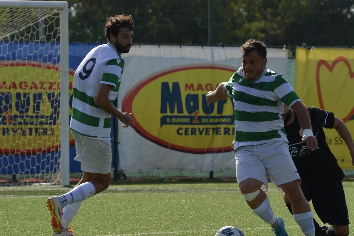 La sua conclusione di destro non dà scampo al portiere. I cerveterani continuano il forcing e Sasha Esposito viene trattenuto in area di rigore: per l’arbitro non ci sono dubbi. Sul dischetto si presenta ancora Morlando che è freddo e realizza il 2-0. Il portiere Chico Montani mai impensierito dagli avversari. Si va a riposo.