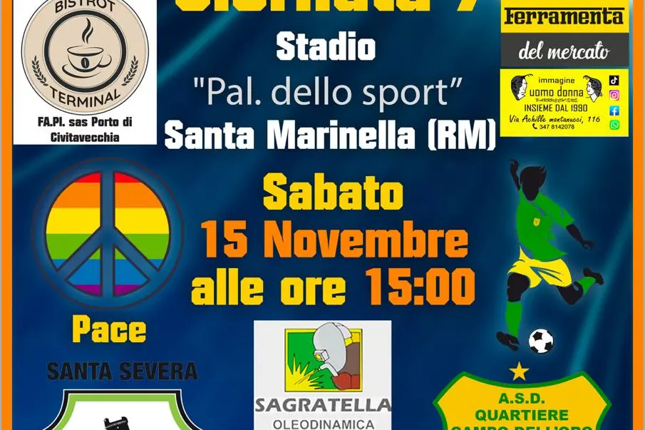 Tutti insieme appassionatamente alle 15, come le domeniche del tempo che furono, anche se in questo caso si gioca di sabato. Questo quanto prevede il turno del campionato di C2, che vede come teatro del big match il Pala De Angelis per un nuovo derby, quello tra Santa Severa e Quartiere Campo dell’Oro. Le due squadre ci arrivano con il morale alto, dopo aver passato il turno di Coppa, ma i neroverdi hanno bisogno di macinare punti salvezza, mentre i gialloverdi cercano quella sterzata che, fino a questo momento, non c’è mai stata veramente, se prendiamo in esame anche la scorsa stagione. Sicuramente potrebbe venire fuori una partita esaltante e ricca di gol. Nel Qco ancora fuori gli squalificati Lipparelli e Vaitovich, infortunato Ferraccioli, in dubbio Dell’Ova per influenza.